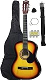 Everything you need to start jamming out at an amazing low price! Learn how to play acoustic guitar and start jamming like a pro in no time. This 38 inch guitar with starter pack is perfect for all beginners! 38" Inch Student Beginner Sunburst Acoustic Guitar with Carrying Case & Accessories